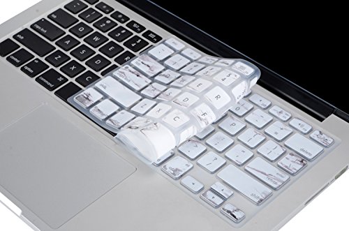 Mosiso Keyboard Cover with Pattern for Macbook Pro 13 Inch, 15 Inch (with or without Retina Display, 2015 or Older Version) Macbook Air 13 Inch, White Marble