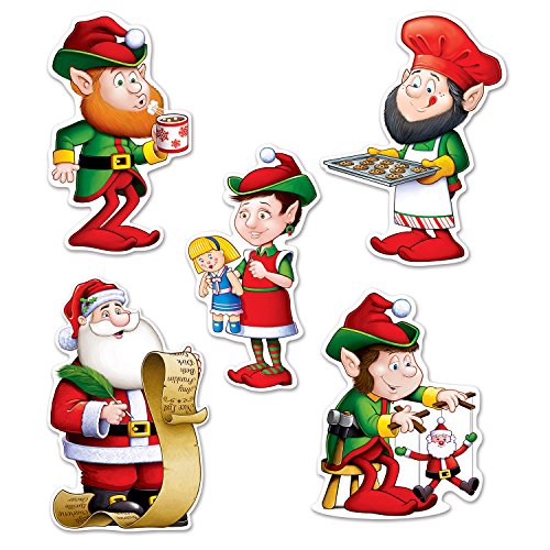Beistle 22222 Mini Santa and Elves Cutouts, 5.5", 10 Cutouts In Package