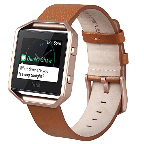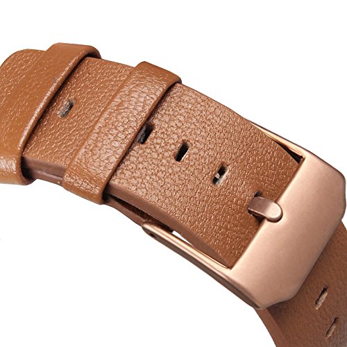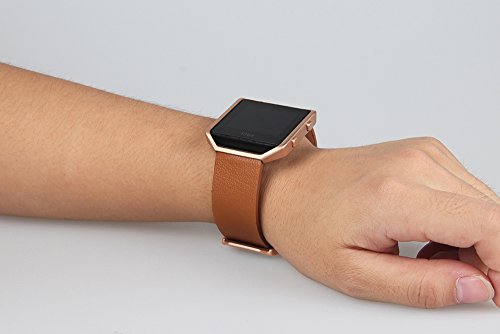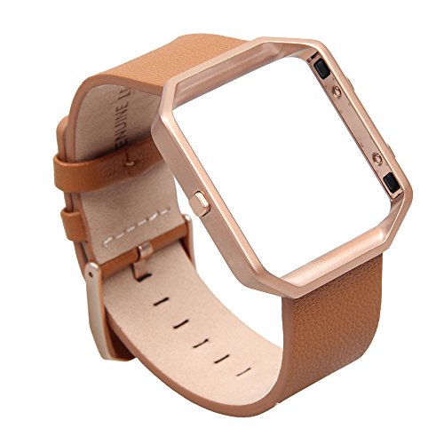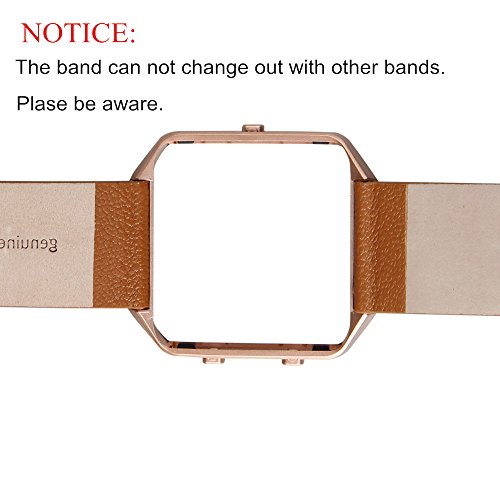 V-Moro for Fitbit Blaze Band, Small Leather Bracelet Strap Replacement Band with Metal Frame For Fitbit Blaze Smart Fitness Watch (Camel Band + Rose Gold Frame-Small)