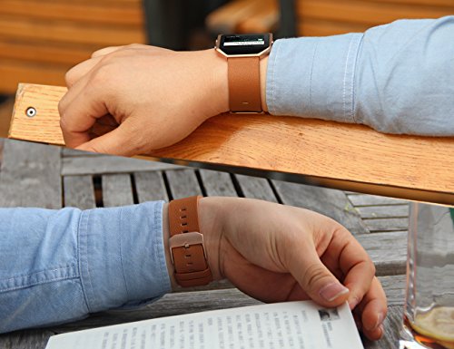 V-Moro 23mm Leather WristBands With metal Housing for Fitbit Blaze, Small, Wrist Size (145mm-178mm)5.7-7 inch