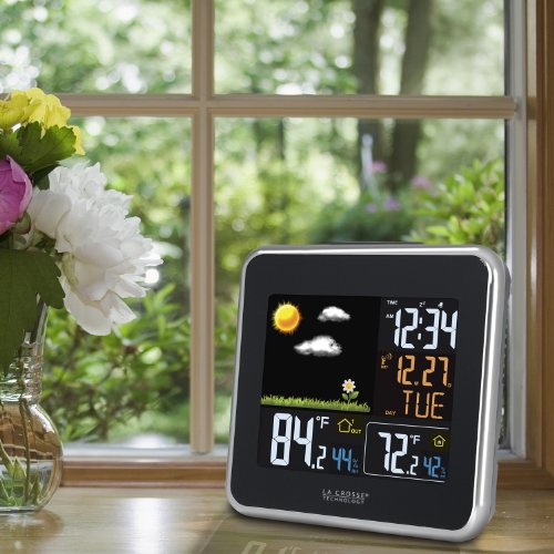 Color weather icons, such as sunny, partly sunny, cloudy, rainy, stormy. This weather station learns! Please allow 3-4 weeks for barometer calibration to generate its best and most accurate forecast. Monitor indoor temperature (F/C) & humidity. Select to display Heat Index & Dew Point.