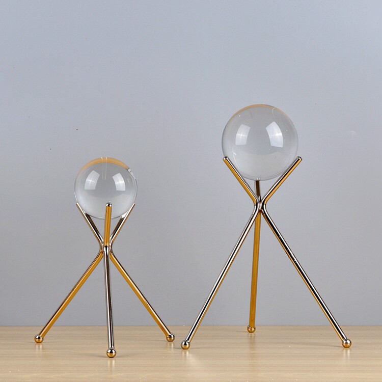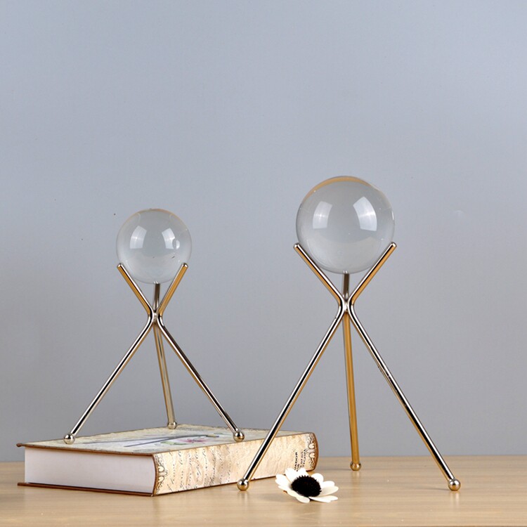 家居饰品摆件样品房装饰不锈钢银色水晶球摆件书房客厅摆件装饰