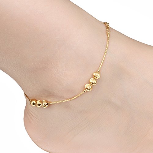 - Title : URs 18k Gold Plated Anklets with Lantern Beads and Bell Heart Pendant for Women