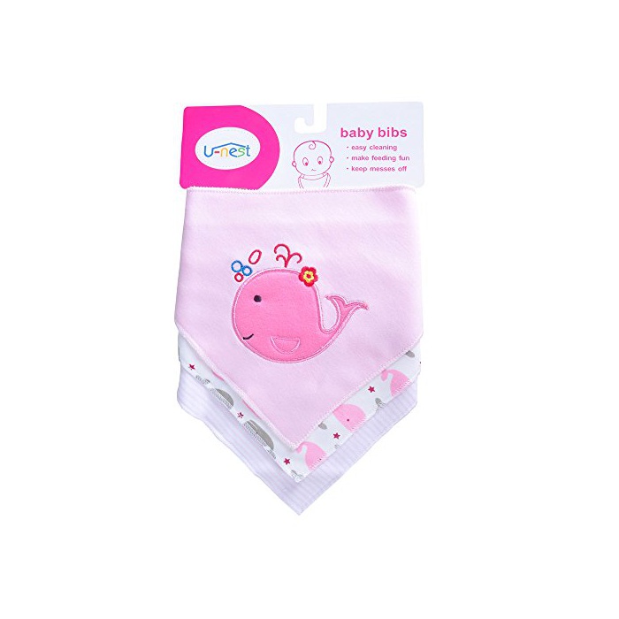 U-nest [u-nest] 코튼100% 베이비 스타이(유아용 턱받이) 트라이앵글 《비부》 키즈 삼각 턱받이 귀여운 《보단》식 소녀 선물 출산 축하 (3 매세트)