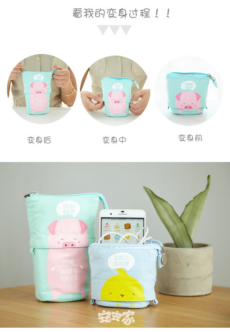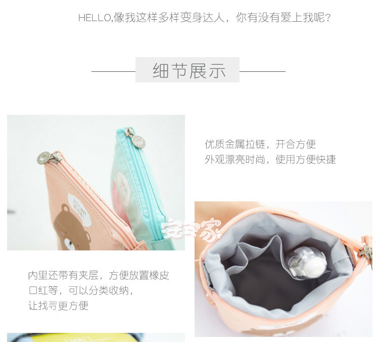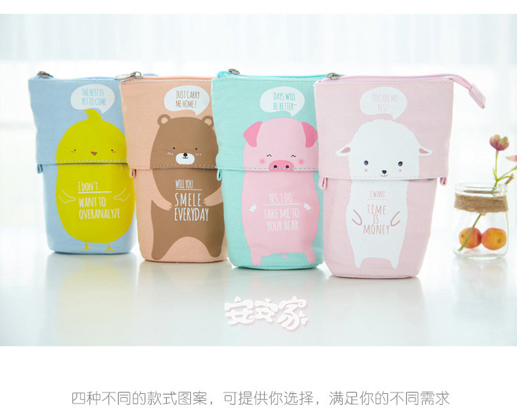 韩国小清新可爱简约多功能笔袋 创意学生卡通帆布铅笔袋女文具盒