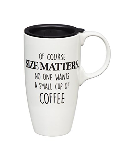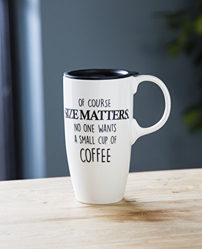 Cypress Home Coffee Size Matters Ceramic Travel Coffee Mug, 17 ounces
