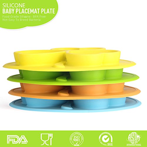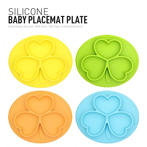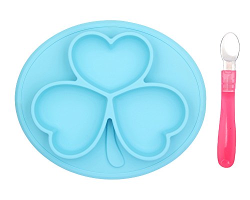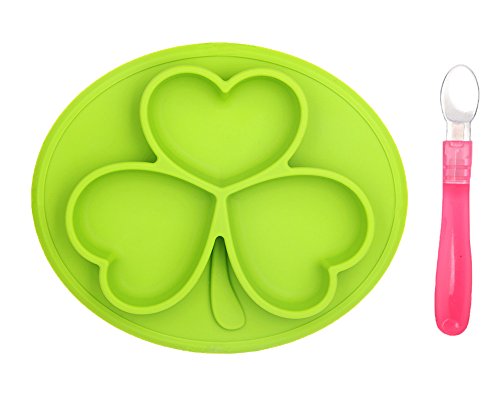 -. Title : MF Silicone Baby Placemat and Feeding Tray for Babies,BPA-Free Shamrock One-Piece plate Non-slip Tableware with Feeding Spoon