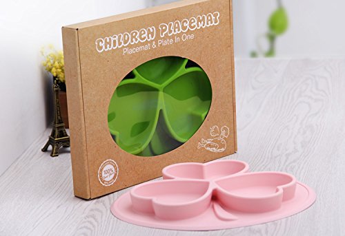 -. Feature : The Unique Design: Lovely heart-shaped flower design with bright color makes meal times more fun for kids. / Quality and Safety Materials:This mini kid's placemat made of 100% food grade silicone,free of BPA,PVC,BPP lead,safety for kids. / Easy to Carry:This mini kid's placemat with repeated use carry bag is lightweight and compact, so it is perfect for dinners out or travel. / Easy to Wash and Use:It is not easy to residual stains. and Safe for Dishwasher, Microwave, Oven, and Freezer. / Make Feeding Easier: One-piece silicone baby/child placemat with combined plate Helps eliminate tipped bowls/plates and mealtime mess. If the table surface is SMOOTH FLAT enough, such as glass table, It can stick on the table, make feeding time easier.