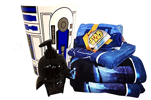 Star Wars Bathroom Set with 2 Bath Towels, 1 Hand Towel, 6 Washcloths, Toothbrush Holder, Soap Dispenser and a Wastebasket