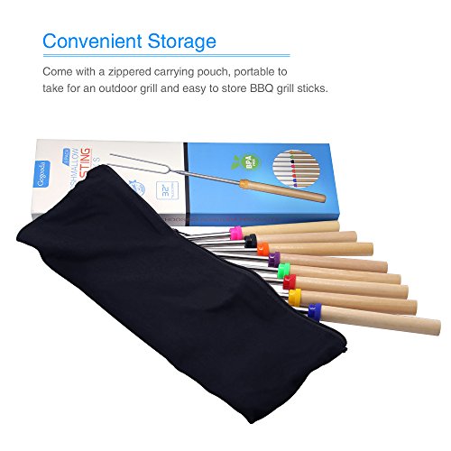 - ✔PREMIUM QUALITY MARSHMALLOW STICKS: Gogooda Marshmallow Roasting Sticks are made from Non-Toxic Heat-Treated FDA Approved 304 Stainless Steel, guaranteed not to rust and safe to use. The comfortable wooden handle gives you a firm, steady grip. The two prongs prevent marshmallows from spinning on stick when melting.