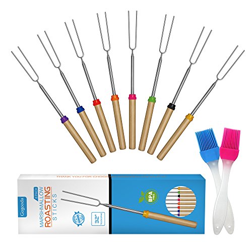 Gogooda 8Pcs Marshmallow Roasting Sticks, Barbecue Forks Set for BBQ, Picnic, Camping, Bonfire Kids with 2 Pcs Silicone BBQ Brush