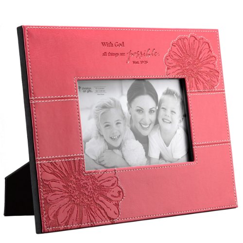Pink "All Things Are Possible" Faux Leather 4 x 6 Photo Frame - Matthew 19:26