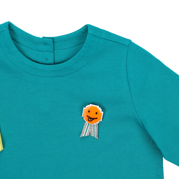 레깅스나 스키니팬츠가 코디용이하며 브롯지장식은 탈부착이 되는 롱티셔츠입니다.