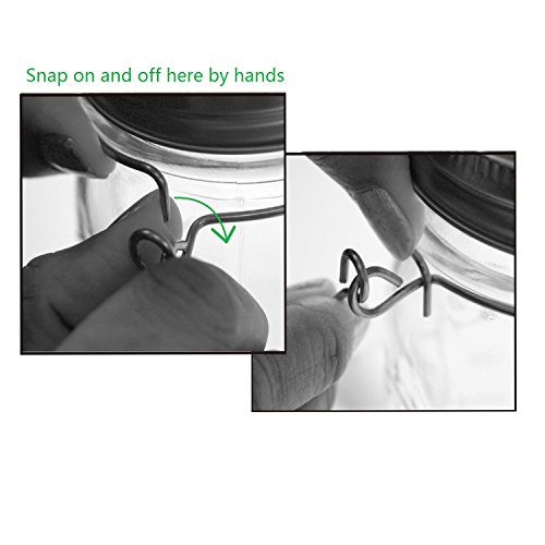 Studio : KC Publisher : KC Product Description For the regular mouth (2 3/8" internal diamter) or wide mouth (3" internal diameter) Mason jars! These can be little tricky to get on but if you have good manual dexterity, you should be able to get them on with just your fingers. From the picture to see where to place the wire on the jar. Fits these regular mouth jars under the glass bead or rim, which is the most secure location: Current Ball quarter pint, half pint, and pint jars. Current Kerr half pint and pint jars. Fits these regular mouth jars only on the threaded portion, which is still OK but not as secure: Current Ball quart jars. Current Kerr quart jars. Most other jars. Fits these wide mouth jars under the glass bead or rim, which is the most secure location: Current Ball pint jars. Current Kerr half pint and pint jars. Fits these wide mouth jars only on the top, threaded portion, which is still OK but not as secure: Current Ball pint half, quart, and half gallon jars. Current Kerr quart jars. Most other jars. 0