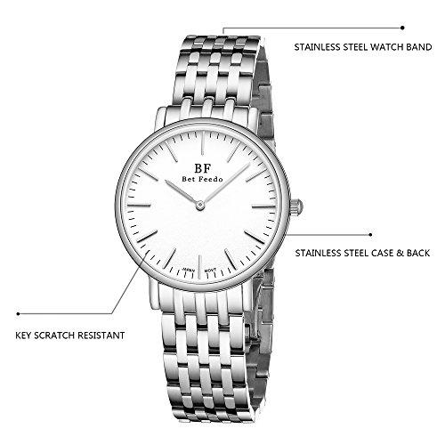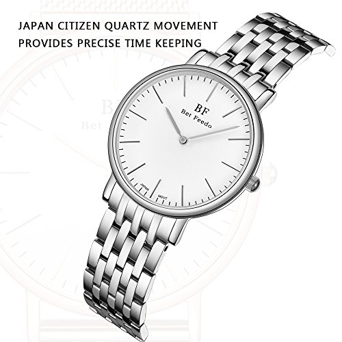 -. Feature : MINIMALIST DESIGN: Classic, Stylish, Minimalist signature styles make BETFEEDO Watch deserve a spot in everyone's collection. No matter business, casual, indoor activities or daily use.It's also a tremendous Gift for your family, friend or lover with a special leather package. / PRECISE TIME KEEPING: CITIZEN Quartz Movement, provide precise and accurate time keeping. / 98FT (30M) WATER RESISTANT: Stainless steel durable waterproof case cover, hand wash, rain day, sweating, NO PROBLEM. In general, withstands splashes or brief immersion in water. (Please DO NOT PULL OUT the button under water. ) Perfect for all kind of business, casual, indoor activities or daily use. / DURABLE: High hardness mineral glass, 316L high quality stainless steel case, 316L stainless steel bracelet and butterfly clasp, easy to wear and comfortably. / WARRANTY: BETFEEDO provide you friendly customer service and lifetime warranty. NOTE: Search "BETFEEDO watch" for other styles and color options offered by BETFEEDO.