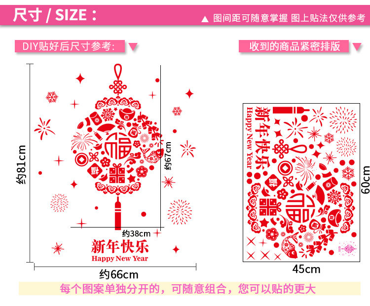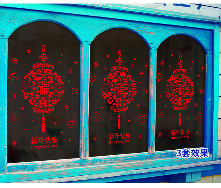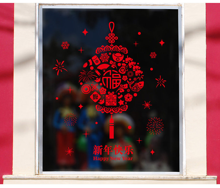 橱窗新年氛围装饰品春节玻璃窗户贴纸年画墙贴画过年新年快乐窗花