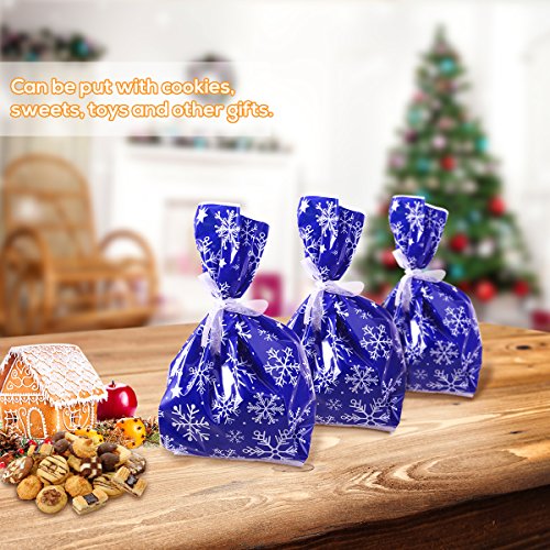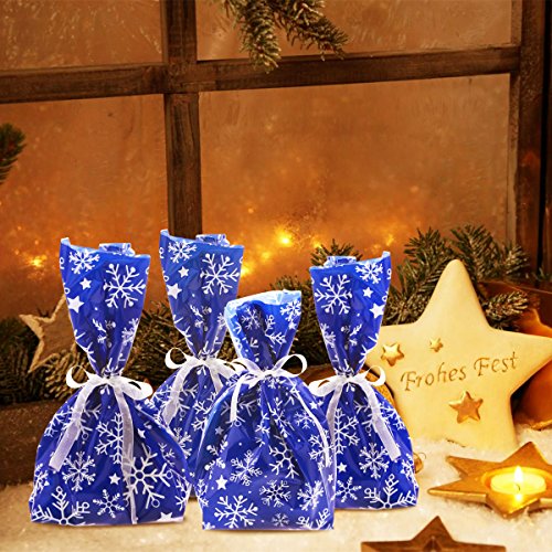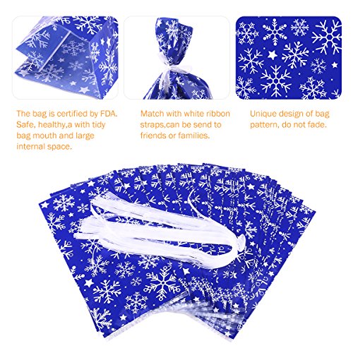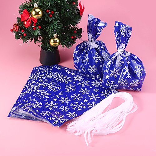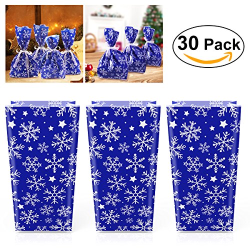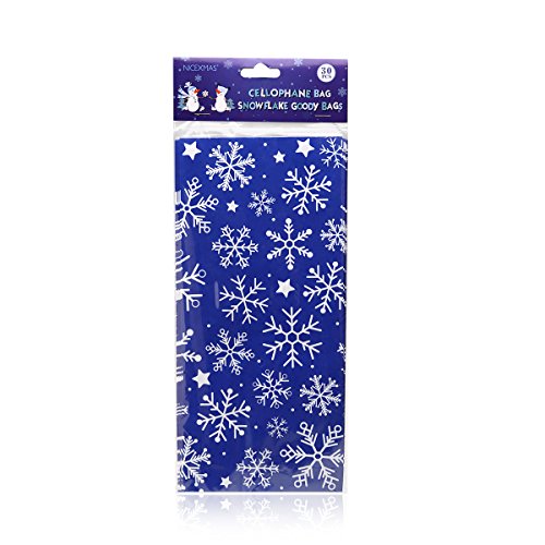 NICEXMAS 30Pcs Snowflake Cellophane Goody Bags with Ribbon Ties Christmas Party Favor Holiday Gift Treat Bags