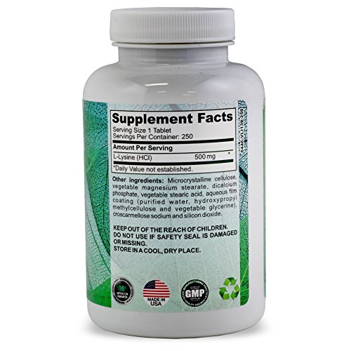 -. Title : L-Lysine Supplement 500mg Value Sized 250 Tablets Formulated and Produced By High Energy Solutions GMP - USA 100% Guarantee