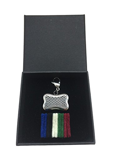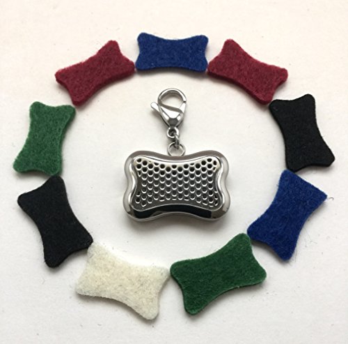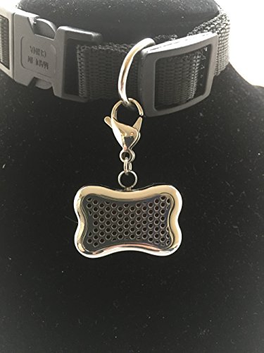 This stainless steel pendant comes with a lobster claw clasp that fastens easily to your dog's collar. Adding and changing the aromas is as simple as adding a few drops to one of the 10 bone shaped pads and placing it in the locket. The magnet holds the pad in place and provides soothing and healing aromatherapy throughout the day.