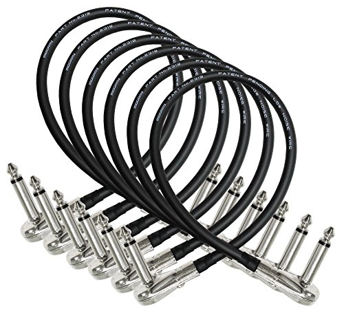 6 Units - Mogami 2319 - 12 Inch - Guitar Bass Effects Instrument, Patch Cable with ¼ Inch Low-Profile, Right Angled Pancake type Connectors