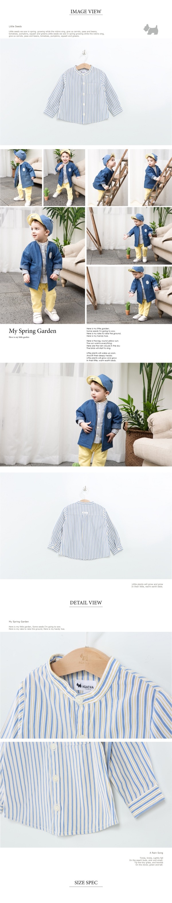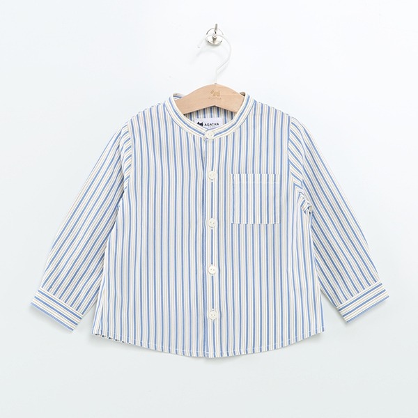 멀티 스트라이프 소재를 사용한 베이직한 헨리넥 셔츠로 포인트 라벨로 포인트를 준 스타일입니다.