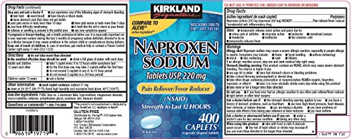 Naproxen Sodium by Kirkland Signature - 400 caplets 220 mg Non Prescription Strength - Compare ...