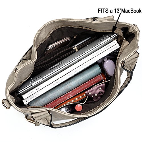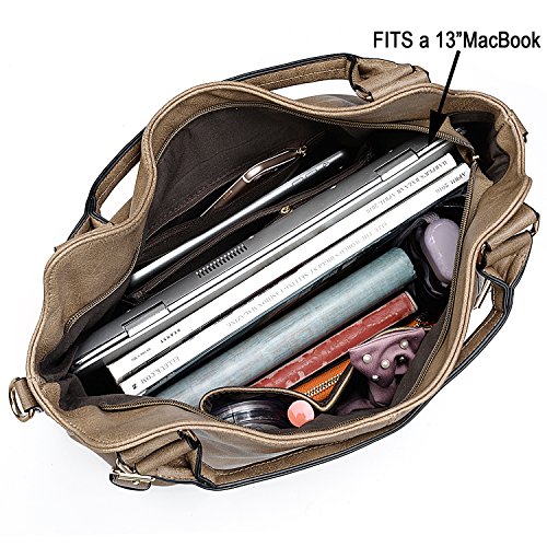 -. Feature : HIGH QUALITY - Soft synthetic leather. Classy gold-tone zipper closure. Detailed streamlined stiching. Full-lined coffee polyster lining. / LARGE CAPACITY - Exterior: 2 front zipper pockets, 1 back zipper pocket. Interior has large compartments with 3 open pockets and 2 internal zipper pockets. / EXTREMELY PRACTICAL - Comfortably holds a 13.3" iPad, tablet or a laptop 14" and under. Pockets can hold your smartphone, cosmetic, hair band, house keys and other tiny items. / MULTIPURPOSE - Handheld / Single Shoulder Carried by 2 Handles. Crossbody Carried by 1 detachable/adjustable shoulder strap. / DIMENSIONS - 12.60"L x 5.70"W x 11.02"H. Weight: 1.83 pounds. Shoulder strap: 47.83". Handle drop: 7.87".