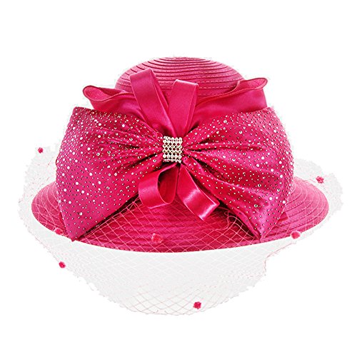 Product Description? Color : Fuchsia ? Theme : Bow ? Crown Circumference : 23" ? Crown Height : 5" ? Brim Width : 4" ? Material : 100% Polyester ? Large Bow on Front Netting Satin Braid Hat0