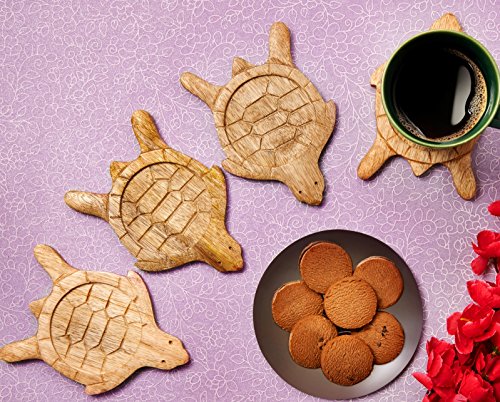 -. Feature : Dimension : - Length - 4 Inches x Width - 4 Inches / PRODUCT - These wooden coasters are made from mango wood in a quirky turtle design. / MATERIAL - Keeps your surface safe from cup stains and spills, its design allows you to accommodate most cups. / FEATURES - You can use it on your dining table for tea cups, coffee mugs or even on your bar table. / UTILITY - Functional and decorative, these coasters are perfect for use at home or at offices, adding a classic touch to your tabletops. Also makes for a elegant Black Friday Deals, Cyber Monday Gifts and Holiday Seasonal Christmas Gift, gift idea for him her.