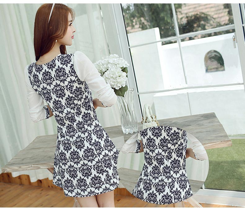 レトロなパターンプリントのシックなドレスなのでお出かけにおススメです