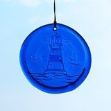 Lighthouse - Window Suncatcher in Blue - Hanging Glass Suncatcher - 4.5" in Dia. Made from Recycled Glass