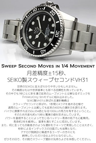 -. Title : [HYAKUICHI 101] ダイバーズウォッチ スイープセコンド 200m防水 逆回転防止ベゼル 腕時計 メンズ