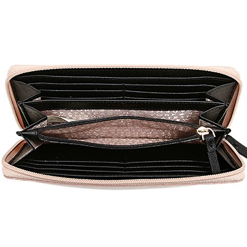 -. Feature : 【カラー】ROSEGOLD / 【サイズ】約横19cm×縦10.5cm×厚み2cm / 【素材】PVC / 【仕様】開閉種別:ファスナー、内部様式:ファスナー式小銭入れ×1、札入れ×3、オープンポケット×2、カードポケット×12、外部様式:オープンポケット×1、その他:-、重量:約200g / 【付属品】-