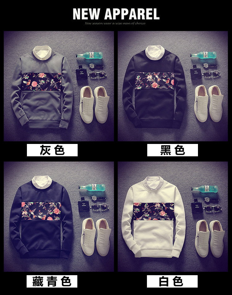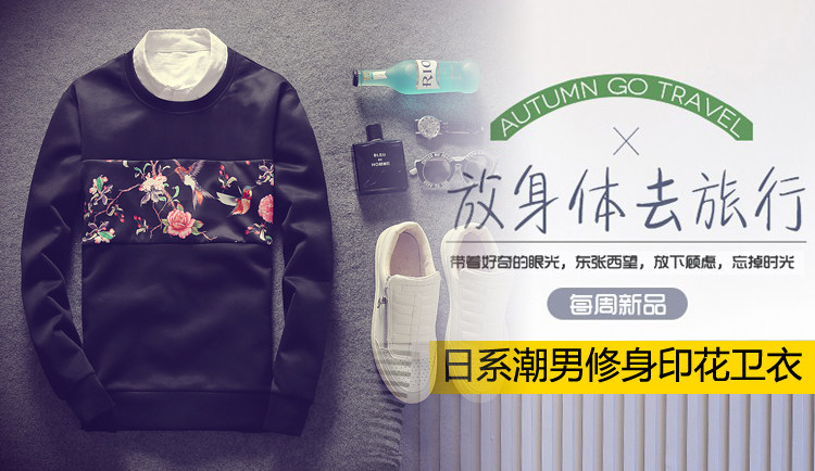 秋装新款男卫衣青年修身套头圆领韩版潮男装日系印花大码外套