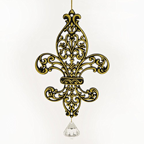 -. Title : Fleur De Lis with Jewel Accent Gold-colored Resin Hanging Christmas Ornament