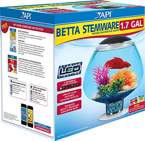 Compact and stylish, this 1.7-gallon betta kit from API comes with everything everything you need for starting a betta aquarium, including free samples of API Betta Food and API Stress Coat. This beautiful stemware-design aquarium features energy-efficient LED lighting with seven dazzling color selections (amber, aqua, blue, green, purple, red, and white) that will really bring your aquarium to life. It requires 2 AA batteries (not included), and it can also be powered by the optional 4.5-volt power adapter (AP45150T, sold separately), which allows you to operate aquarium's LED lights from an electrical power outlet. Constructed of crystal clear, impact-resistant acrylic, this aquarium is as safe for your fish as glass aquariums, and its seamless fabrication eliminates the risk of leaks associated with aquariums that have glued seams. The included API Stress Coat is a scientifically proven treatment that's proven to reduce fish stress and heal damaged tissue using the healing power of Aloe Vera. In addition to its popular desktop aquariums, KollerCraft also offers TOM aquarium filters and accessories, as well as Repitat reptile habitats. 0 |