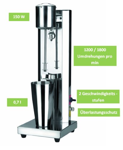 -. Feature : mit Überlastungsschutz / 150 Watt / Edelstahlmixbecher: 0,7 l / 2 Geschwindigkeitsstufen: 1200 / 1800 Umdrehungen pro Minute / Gastronomiequalität