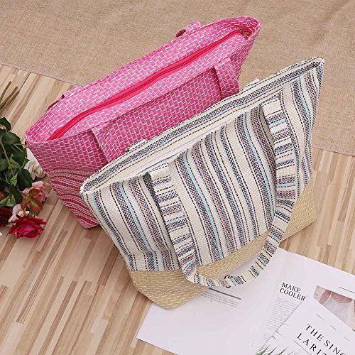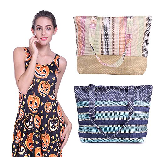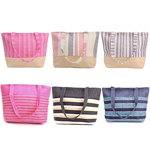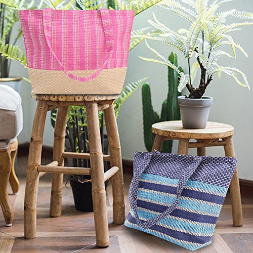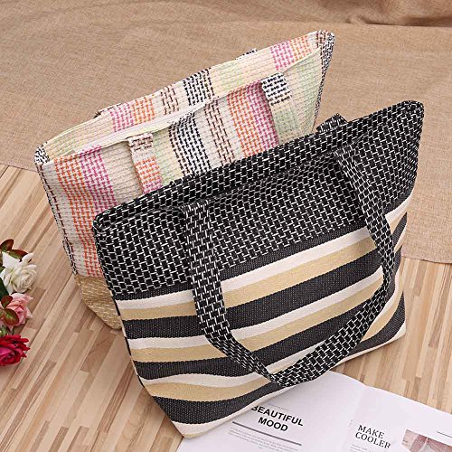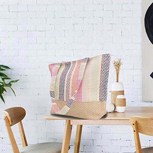 -. Title : Lady's Colored Stripes Shopping Wristlet Shoulder Handbag Canvas Tote Purse, Casual Bag for Women Girls