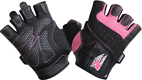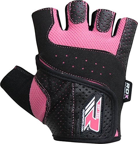 The Women's fitness gloves from RDX provide performance enhancing support for weight lifting and other gym workouts. Constructed with high-grade, washable Amara leather and Coolmax Lycra for breathability, the gloves are built for comfort and durability. The gloves feature an anatomical pad system that is designed to help strengthen your grip, prevent blisters and calluses, and reduce hand fatigue. Motion Zones over the knuckles and Web Zones between the fingers promote natural hand movement and help circulate air.Feature