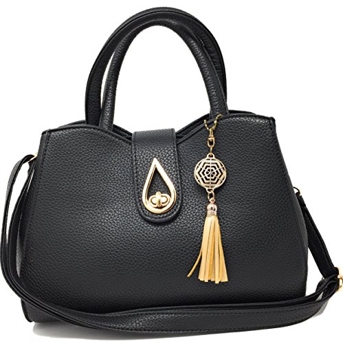 Blazing Autumn Fashion Handbag / Shoulder Bag / Black Faux Leather / Gold Color Accents
