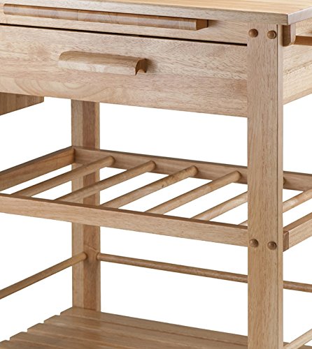 -. Feature : Kitchen cart with Cutting shelf and knife block / Has a 60 days free replacement policy for any missing/damaged parts; Replacements due take 5-7 business days to ship out / Assembly is required, all hardware is included in the package