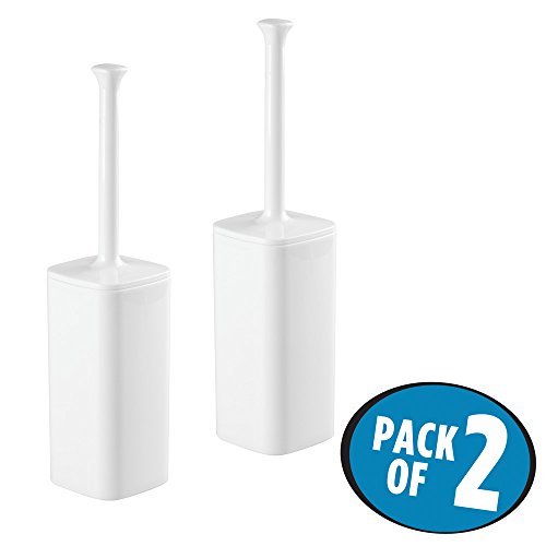 mDesign Square Toilet Bowl Brush and Holder for Bathroom Storage - Pack of 2, White