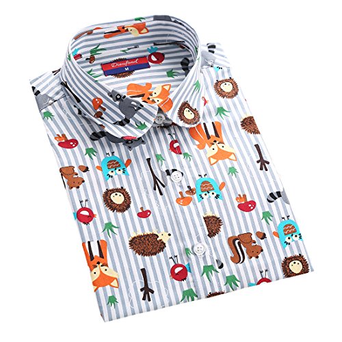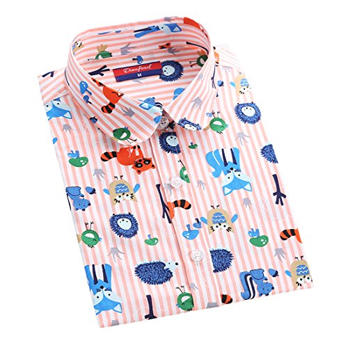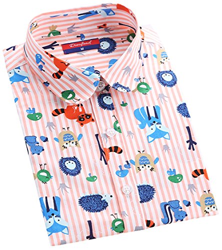 -. Title : Dioufond 可愛いストライプ動物柄 ブラウスシャツ プリント ファッション トップス 丸襟長袖 綿素材