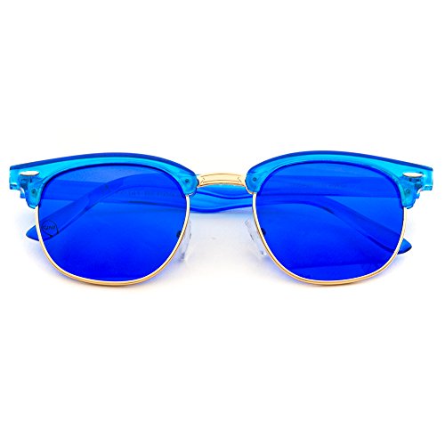 Transparent Frame Tinted Color Lens Semi-Rimless Style Chic Retro Sunglasses