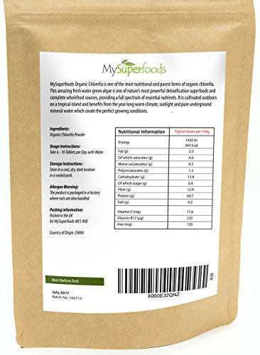 -. Title : Organic Chlorella Tablets (500 grams / 1.10 lbs) | MySuperFoods | Incredibly High Chlorophyll Content | Bursting with Nutrients | Certified Organic | Healthy Edible Algae | Add to Drinks and Smoothies