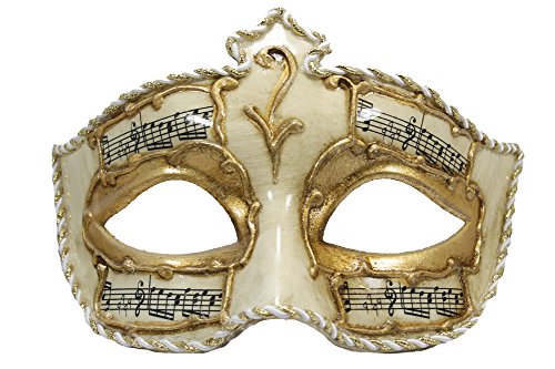 -. Binding : Toy -. Brand : RedSkyTrader -. ClothingSize : One Size -. Department : womens -. Feature : Made of Plastic - Off-white with Painted Designs / About 7" Wide and 4" Tall / Perfect for Any Masquerade Ball or Venetian Party / Fits Most Adults / Hand Finished - Some Differences Likely -. PackageQuantity : 1 -. ProductGroup : Toy -. ProductTypeName : TOYS_AND_GAMES -. Size : One Size -. Title : RedSkyTrader Womens Venetian Mask with Music Notes One Size Fits Most Off-White