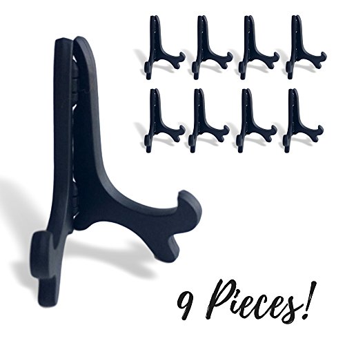 - 6-INCH EASELS. Set of 9 black easels are plastic but have a wood-like finish which gives a higher value image.