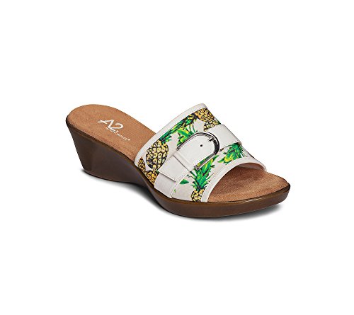 Studio : A2 by Aerosoles Publisher : A2 by Aerosoles Binding : Shoes Product Description A2 by Aerosoles here’s the pop in popular style. 3¾ inch raffia-covered wedge, which includes a ¾ inch platform, sets you up for sandal season. The ruched canvas straps with side buckle closure drape across your foot for a chic look. Diamond patterned sole and a memory foam footbed offer the best comfort. 0