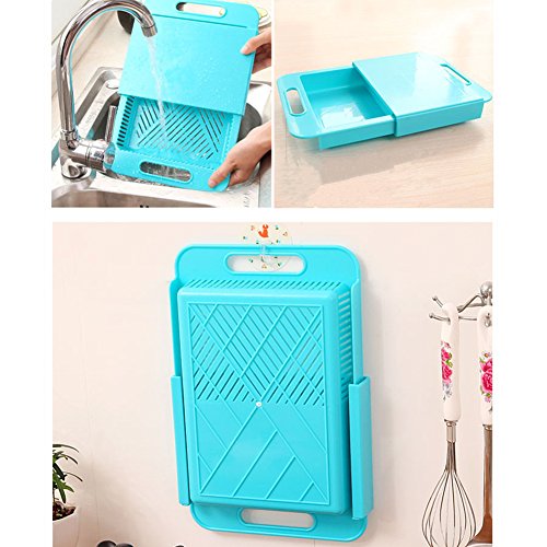 - The chopping board can be split, can move around, a double layer lattice, one is for drain, another is used for storage.