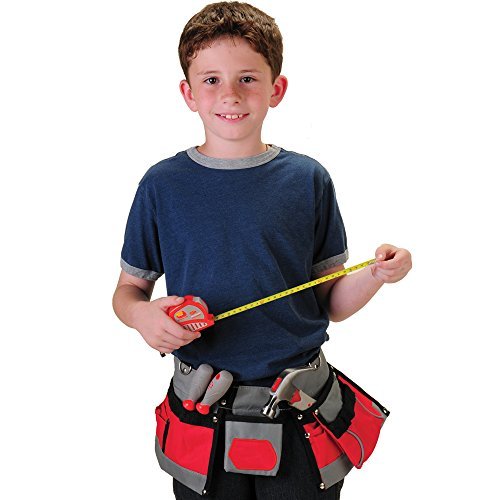 Studio : CP Toys Publisher : CP Toys Binding : Toy Product Description The Real Tools Set with Tool Belt Set (#RTL-11) by CP Toys is perfect for "little" home improvements and big imaginations. The 4 included tools - a hammer, Philips screwdriver, flat head screwdriver, and 10-foot flexible tape measure - are all real heavy-duty tools that are sized for smaller hands. Encourage creativity, build fine motor skills, and stimulate narrative play with these cool tools. Thanks to the multiple pockets on the wide-webbing belt, kids can take the included tools and more on the go, in case there's an off-site project that needs some handy help! The tools even feature slip-resistant, textured rubber grips. Every last detail of this playset is crafted with the utmost sturdiness and durability. These sturdy tools are designed to provide years of fun as both playthings and timeless keepsakes. Kids will love the stylish gray and red color scheme. Like all Constructive Playthings CP Toys products, all components of our tool belt set are 100% BPA- and PVC-free and completely safe for use. Plus, cleaning is easy: simply wipe down with a damp cloth and allow to air dry. Package includes (1) adjustable canvas tool belt, (1) 7" hammer, (1) 7.5" Philips screwdriver, (1) 7.5" flat head screwdriver, and 10-foot flexible tape measure. Please note: This product possesses functional sharp edges and is not for children under 6 years of age. Recommended for ages 8 and up. Adult supervision may be required. 0
